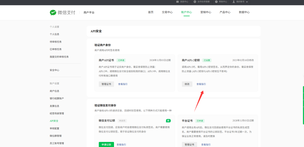 配置收款账号,从微信支付平台获取